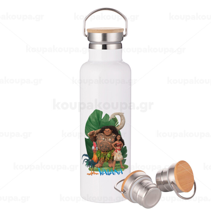 Vaiana, Stainless steel White with wooden lid (bamboo), double wall, 750ml