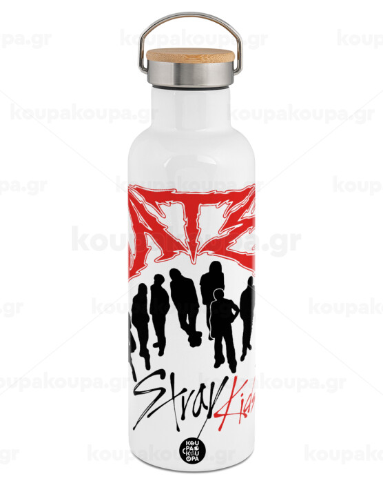 Stray Kids Boy band, Stainless steel White with wooden lid (bamboo), double wall, 750ml
