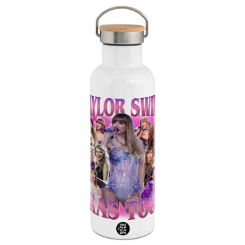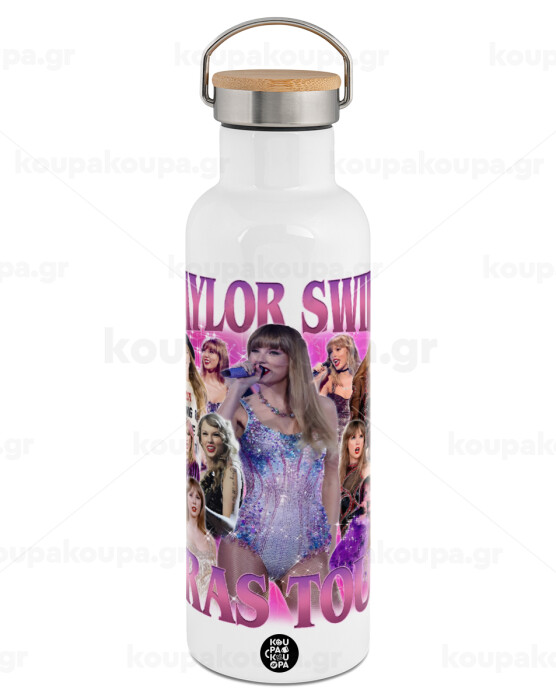 Taylor Swift, Stainless steel White with wooden lid (bamboo), double wall, 750ml