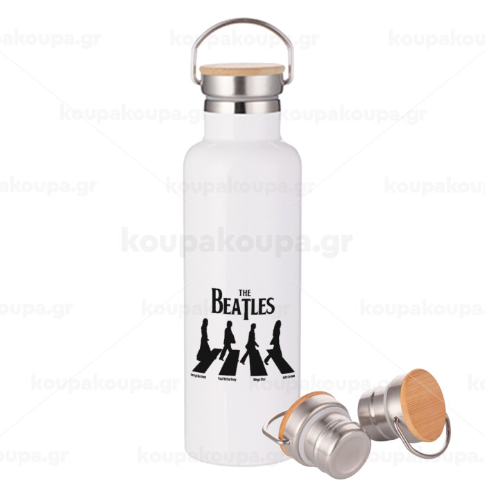 The Beatles, Abbey Road, Stainless steel White with wooden lid (bamboo), double wall, 750ml