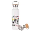 Friends, Stainless steel White with wooden lid (bamboo), double wall, 750ml