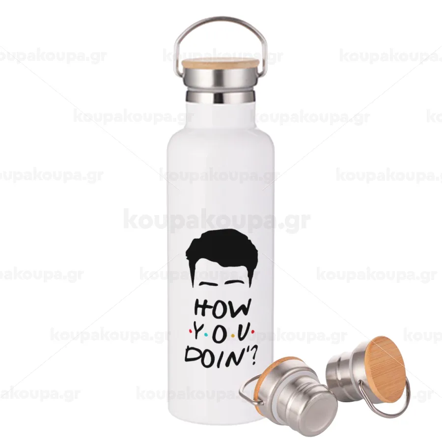 Friends how you doin?, Stainless steel White with wooden lid (bamboo), double wall, 750ml