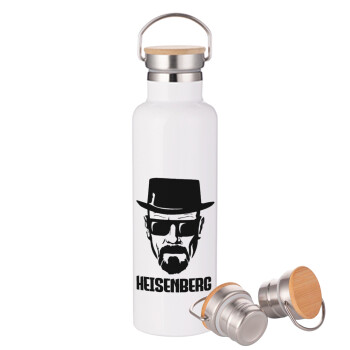 Heisenberg breaking bad, Stainless steel White with wooden lid (bamboo), double wall, 750ml