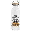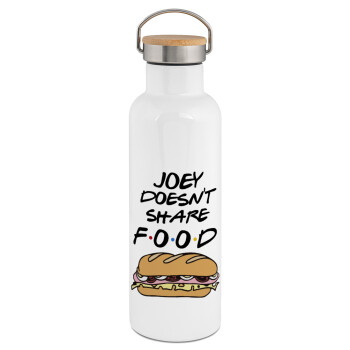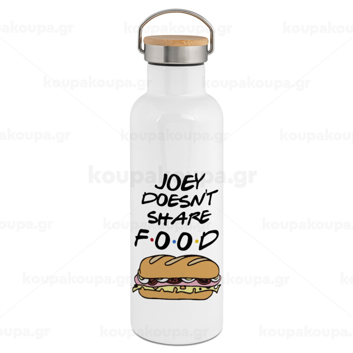 Joey Doesn't Share Food, Stainless steel White with wooden lid (bamboo), double wall, 750ml