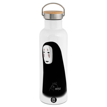Spirited Away No Face, Stainless steel White with wooden lid (bamboo), double wall, 750ml