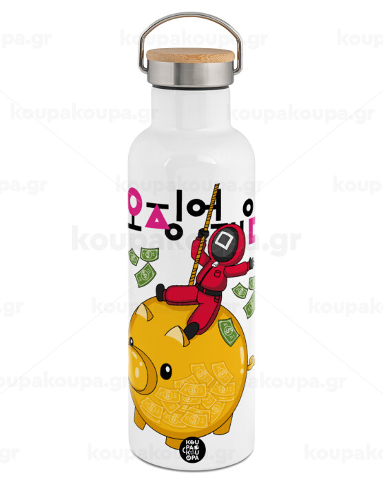 Squid game money pig, Stainless steel White with wooden lid (bamboo), double wall, 750ml