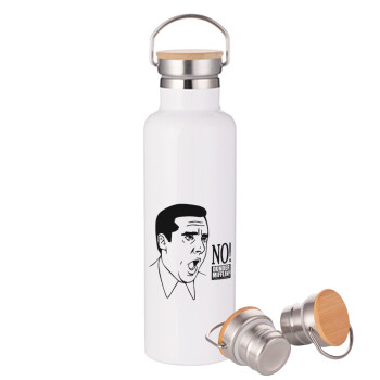 The office Michael NO!!!, Stainless steel White with wooden lid (bamboo), double wall, 750ml