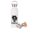 Wednesday Addams, Stainless steel White with wooden lid (bamboo), double wall, 750ml