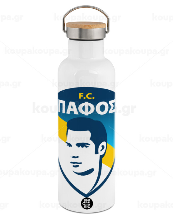 Πάφος FC, Stainless steel White with wooden lid (bamboo), double wall, 750ml