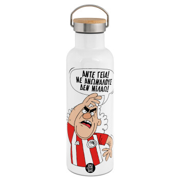 Τάκης, Άντε γεια, με ανώμαλους δεν μιλάω!, Stainless steel White with wooden lid (bamboo), double wall, 750ml