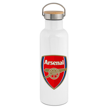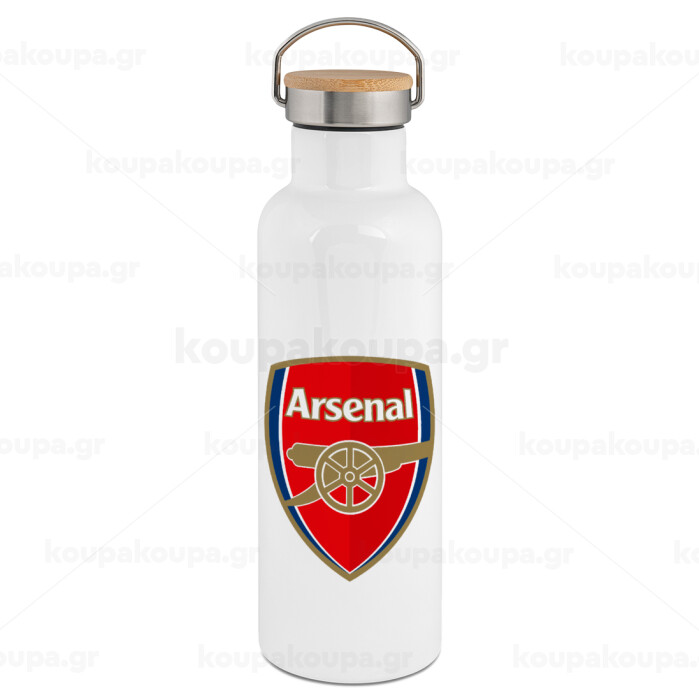 Arsenal, Stainless steel White with wooden lid (bamboo), double wall, 750ml