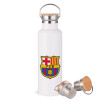 Barcelona FC, Stainless steel White with wooden lid (bamboo), double wall, 750ml