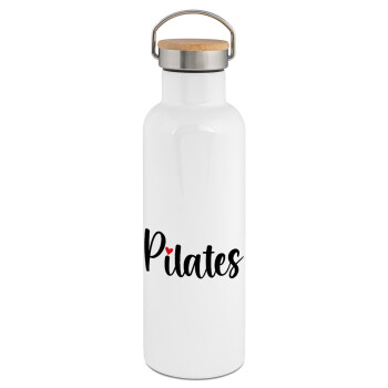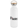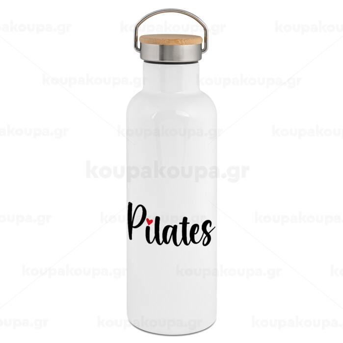Pilates love, Stainless steel White with wooden lid (bamboo), double wall, 750ml