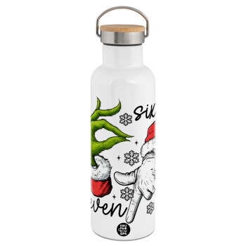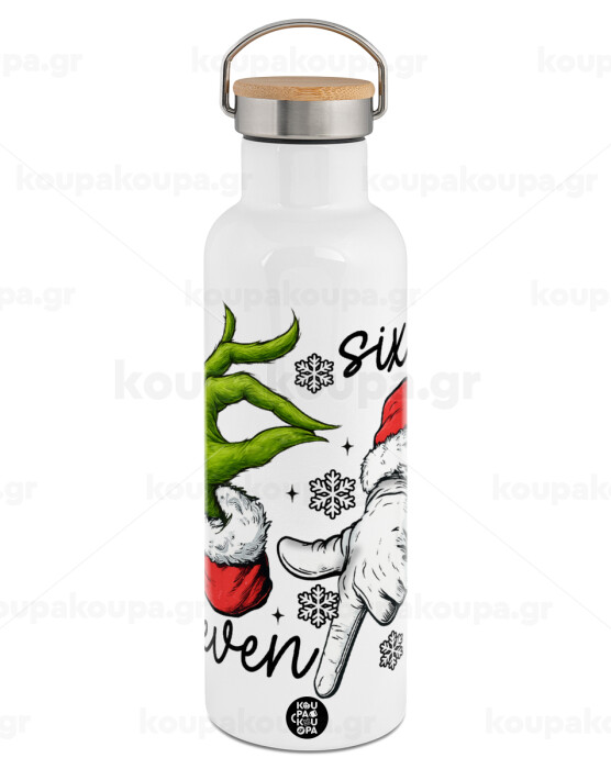 Christmas Meme SIX SEVEN (67), Stainless steel White with wooden lid (bamboo), double wall, 750ml