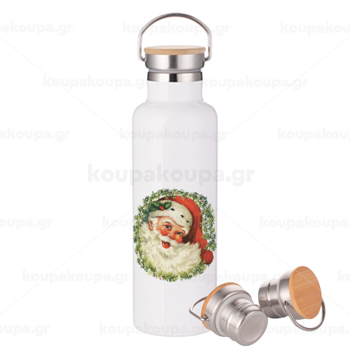 Santa Claus, Stainless steel White with wooden lid (bamboo), double wall, 750ml