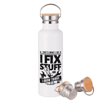 I fix stuff, Stainless steel White with wooden lid (bamboo), double wall, 750ml