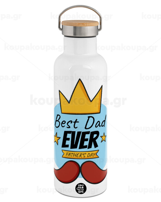 King, Best dad ever, Stainless steel White with wooden lid (bamboo), double wall, 750ml