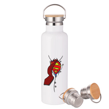 SuperDad, Stainless steel White with wooden lid (bamboo), double wall, 750ml