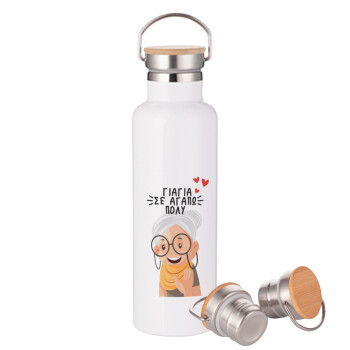 Γιαγιά σε αγαπώ πολύ!, Stainless steel White with wooden lid (bamboo), double wall, 750ml