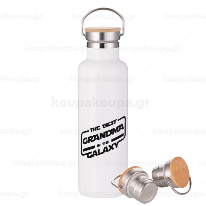 The Best GRANDMA in the Galaxy, Stainless steel White with wooden lid (bamboo), double wall, 750ml