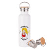 Μανούλα σ'αγαπώ αγκαλιά!, Stainless steel White with wooden lid (bamboo), double wall, 750ml