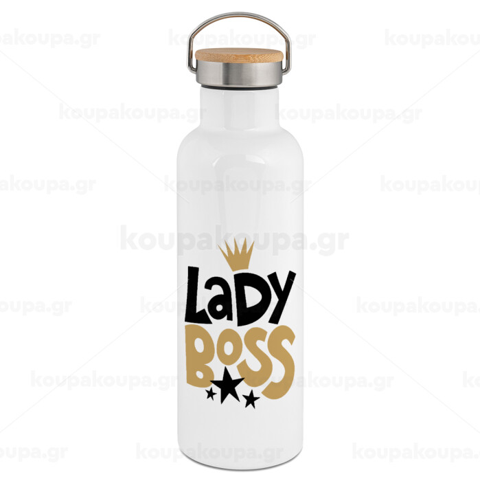 Lady Boss, Stainless steel White with wooden lid (bamboo), double wall, 750ml