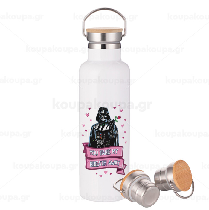 Darth Vader, you take my breath away, Stainless steel White with wooden lid (bamboo), double wall, 750ml