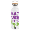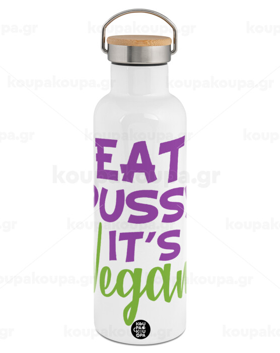 EAT pussy it's vegan, Stainless steel White with wooden lid (bamboo), double wall, 750ml