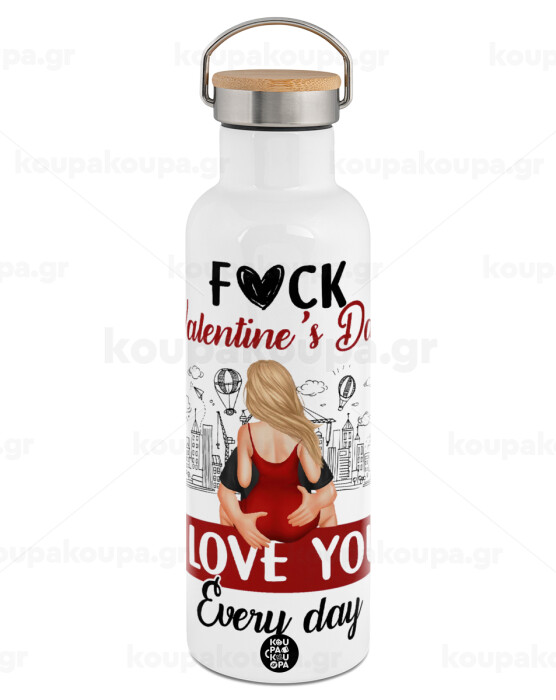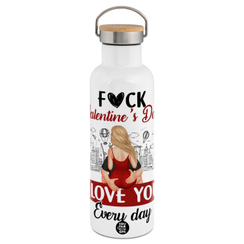I love You Everyday , Stainless steel White with wooden lid (bamboo), double wall, 750ml