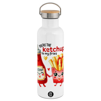 Ketchup To My Fries, Stainless steel White with wooden lid (bamboo), double wall, 750ml
