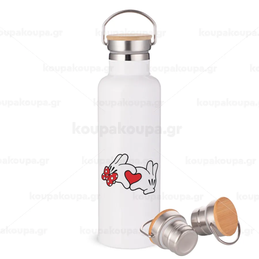 Love hands, Stainless steel White with wooden lid (bamboo), double wall, 750ml