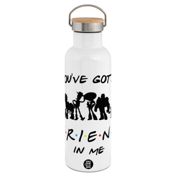 You've Got a Friend in Me, Stainless steel White with wooden lid (bamboo), double wall, 750ml