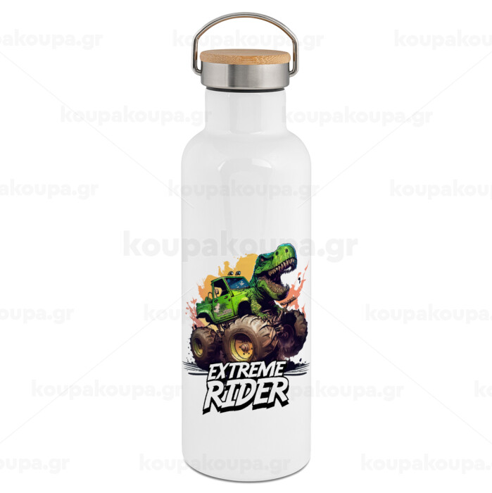 Extreme rider Dyno, Stainless steel White with wooden lid (bamboo), double wall, 750ml
