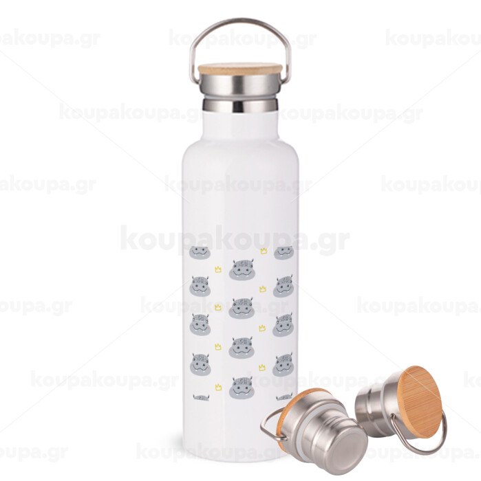 Hippo, Stainless steel White with wooden lid (bamboo), double wall, 750ml