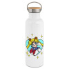 Sailor Moon star, Stainless steel White with wooden lid (bamboo), double wall, 750ml