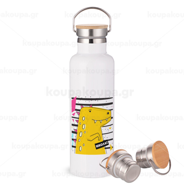 t-rex , Stainless steel White with wooden lid (bamboo), double wall, 750ml