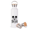 Mikey Mr, Stainless steel White with wooden lid (bamboo), double wall, 750ml
