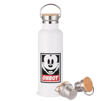 Oh boy μίκυ, Stainless steel White with wooden lid (bamboo), double wall, 750ml