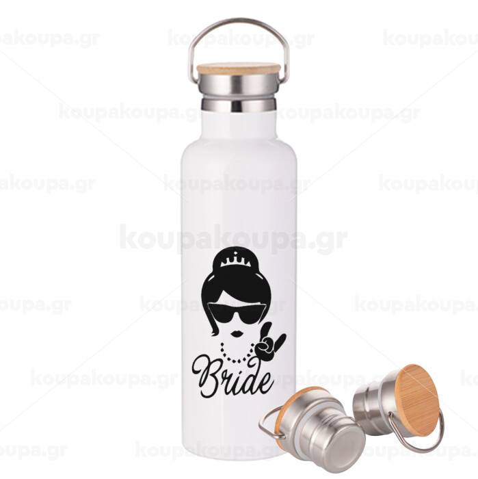 Bride hands, Stainless steel White with wooden lid (bamboo), double wall, 750ml