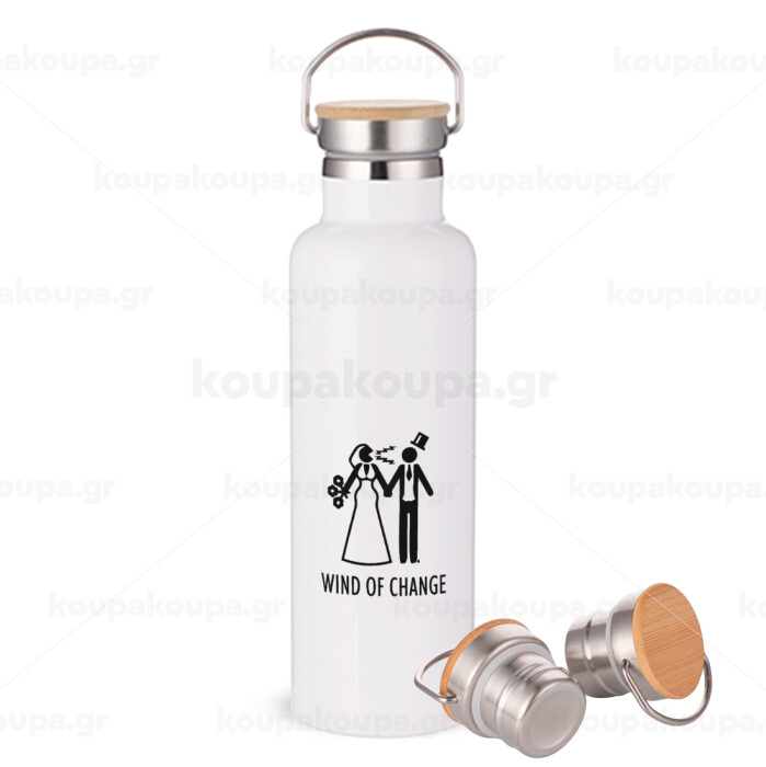 Couple Wind of Change, Stainless steel White with wooden lid (bamboo), double wall, 750ml