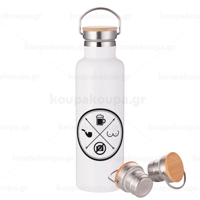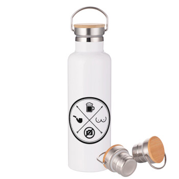 The Bachelor Rules, Stainless steel White with wooden lid (bamboo), double wall, 750ml