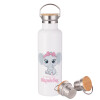 Η νονά μου, ελεφαντάκι ροζ, Stainless steel White with wooden lid (bamboo), double wall, 750ml