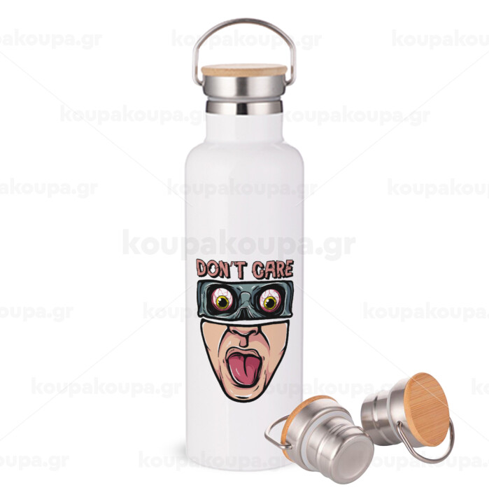 Don't Care, Stainless steel White with wooden lid (bamboo), double wall, 750ml