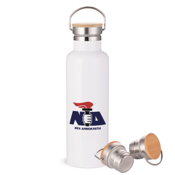 Νέα δημοκρατία κλασική, Stainless steel White with wooden lid (bamboo), double wall, 750ml