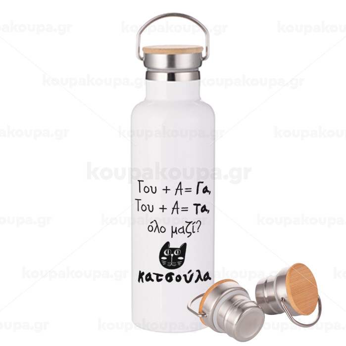 Κατσούλα, Stainless steel White with wooden lid (bamboo), double wall, 750ml