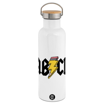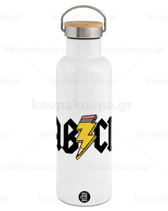 ABCD, Stainless steel White with wooden lid (bamboo), double wall, 750ml