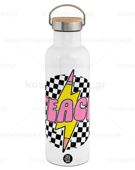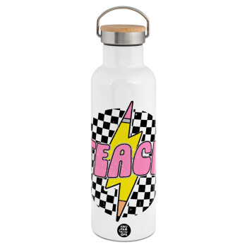 Teach, Stainless steel White with wooden lid (bamboo), double wall, 750ml