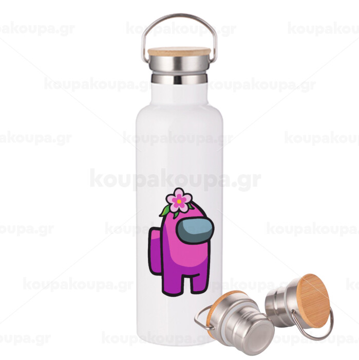 Among US girl, Stainless steel White with wooden lid (bamboo), double wall, 750ml