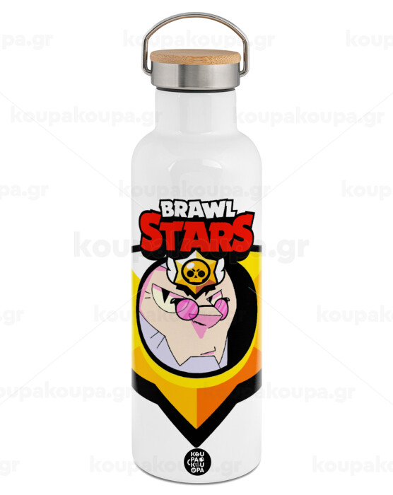 Brawl Stars Byron, Stainless steel White with wooden lid (bamboo), double wall, 750ml