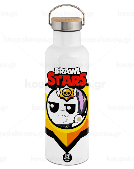 Brawl Stars Kit, Stainless steel White with wooden lid (bamboo), double wall, 750ml